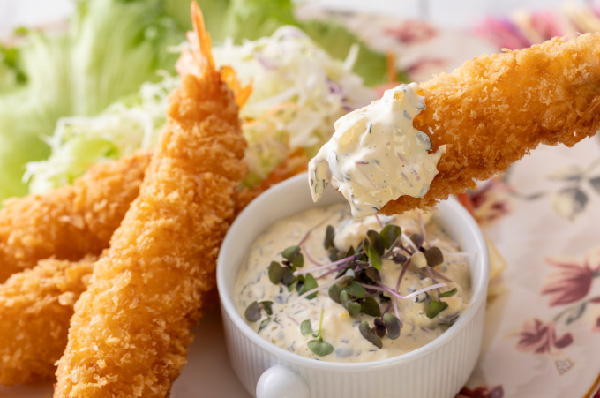 スプラウトタルタルソース 日本ガスアグリ様の「すごい野菜」リーフレット、ホームページ掲載用に撮影。商品の紹介と併せて、おいしく野菜を食べられるレシピを考案しています。弊社スタジオで「すごいスプラウト パープルバジル」を使用したタルタルソースを実際に調理して撮影しました。
