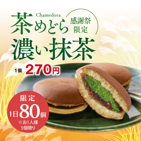 3日間限定「茶めどら濃い抹茶」は上質抹茶「式部の昔」を通常の5倍も使った贅沢仕様![]()