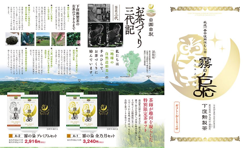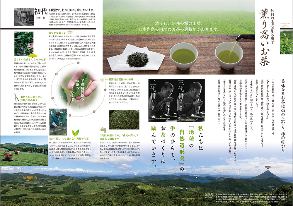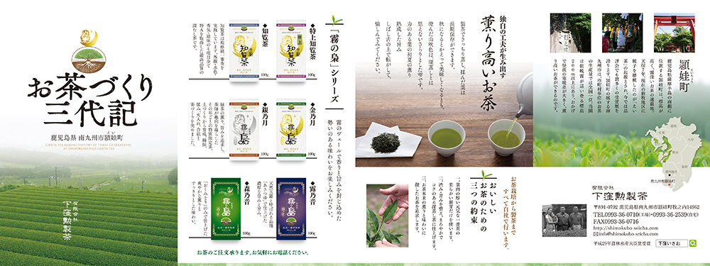 (有)下窪勲製茶様のタペストリー、リーフレットを制作させていただきました。他にもショッピングサイト、HP、パッケージデザイン、ギフトチラシを制作させていただきました。
