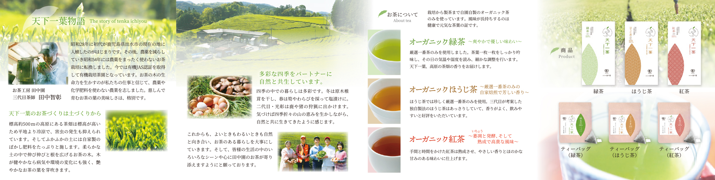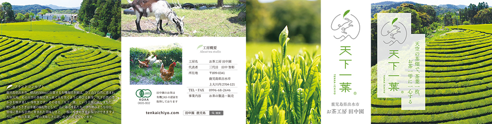お茶工房田中園様のリーフレット、商品パッケージ、タペストリー、テーブルクロスを制作させていただきました。