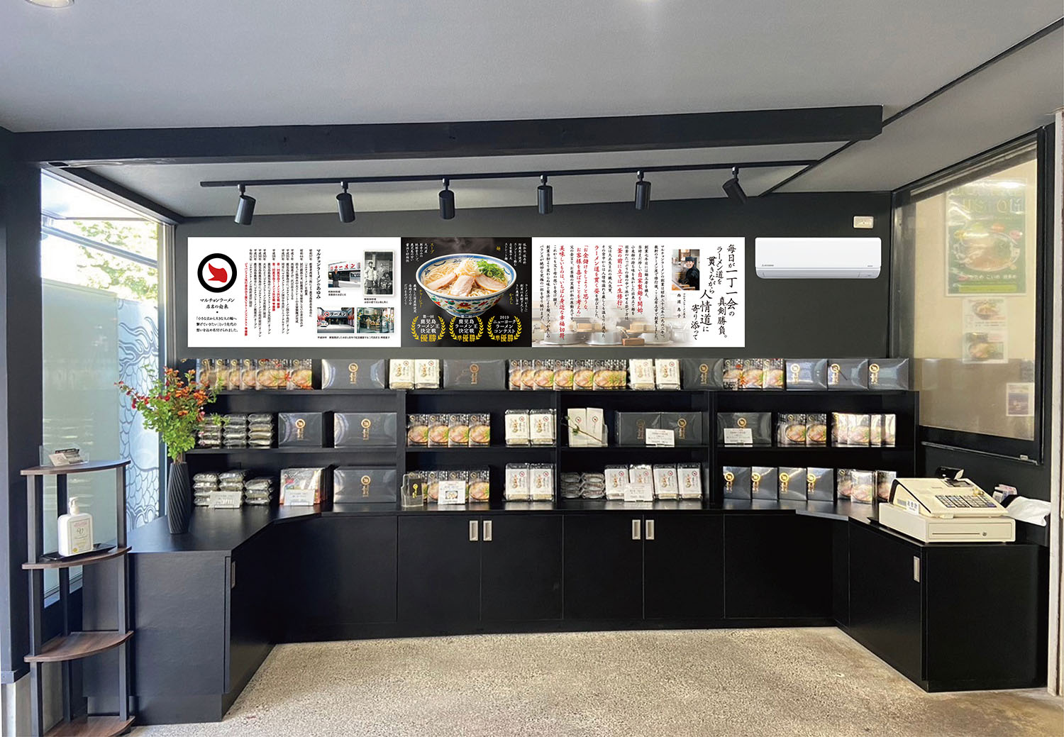 そのマルチョンラーメン様が長い年月をかけ、満を持して完成された販売用マルチョンラーメン「真王道」の撮影、パッケージデザイン及び商品紹介しおり、展示会用タペストリ、商談会ブースの制作に携わらせていただきました。