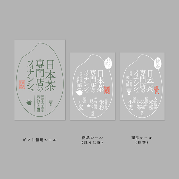 若竹園様 明治11年から続く大分県の老舗茶店、お茶のばらえtea若竹園様のフィナンシェをリニューアルデザインさせていただきました。お茶の香りと味へのこだわりをストレートに伝えるため、商品名「日本茶専門店のフィナンシェ」をご提案。高級感のあるデザインに仕上げました。 ホームページとショッピングサイトも制作させていただいております。 シールイメージ 箱イメージ 商品イメージ