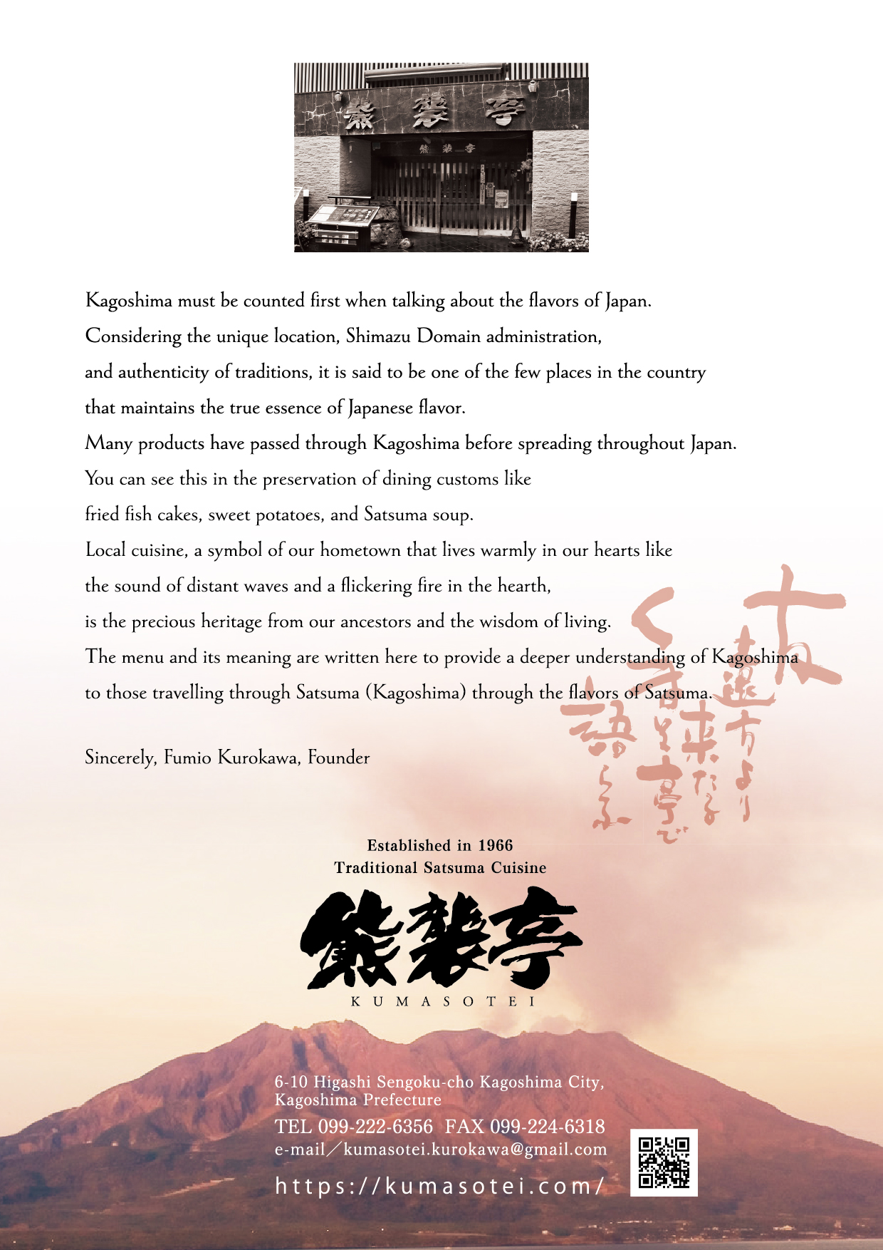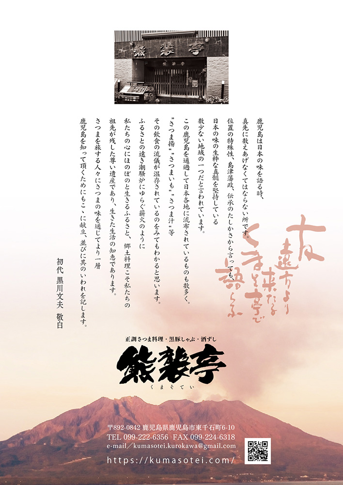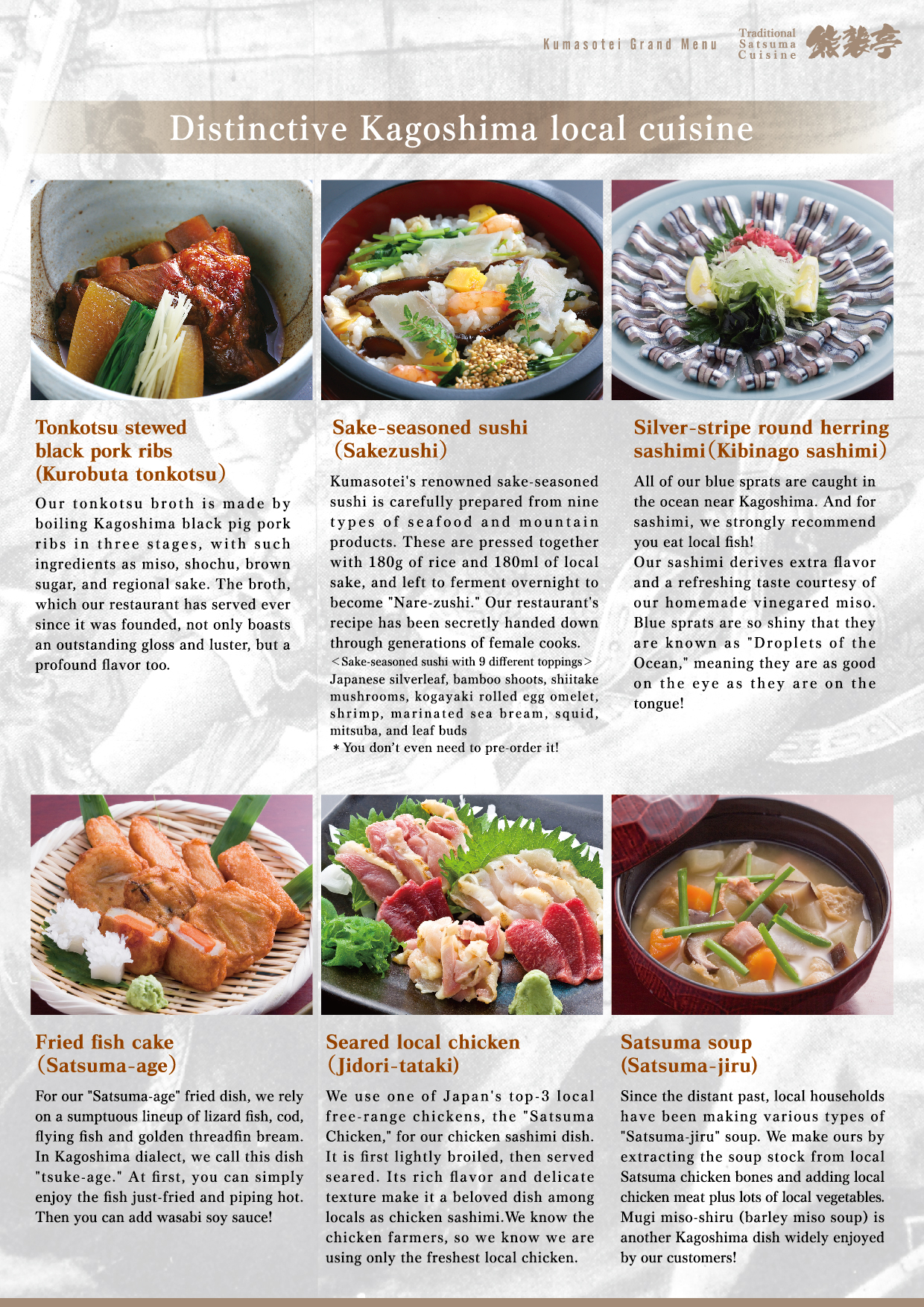 鹿児島の繁華街・天文館にて、鹿児島伝統の郷土料理を心づくしのおもてなしで提供している 郷土料理店です。