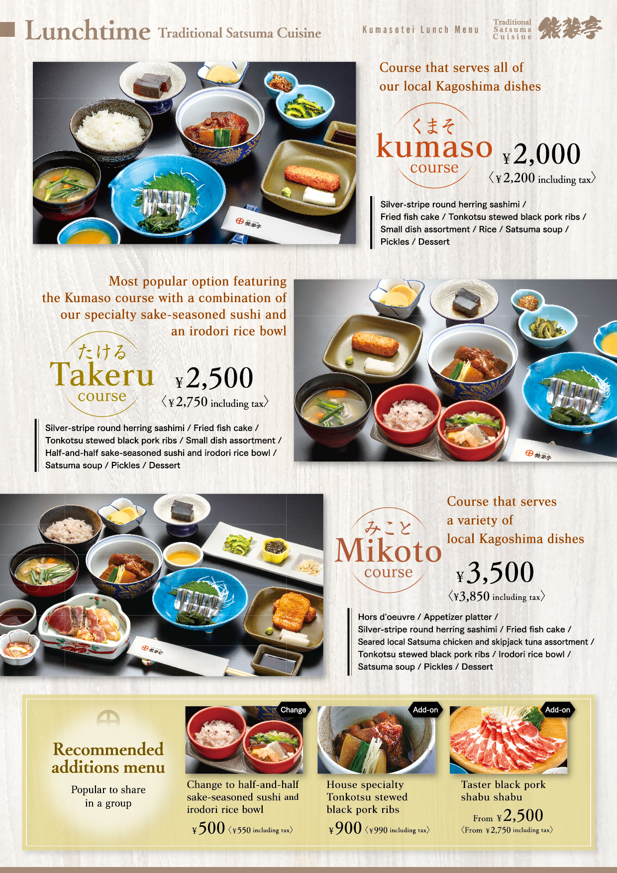 店舗リーフレットを2種類、商品リーフレット、メニューブック(日本語版・英語版)、郷土料理の自動販売機のデザイン、パッケージデザイン、おせち料理の撮影、Webサイト、ショッピングサイトを製作しました。