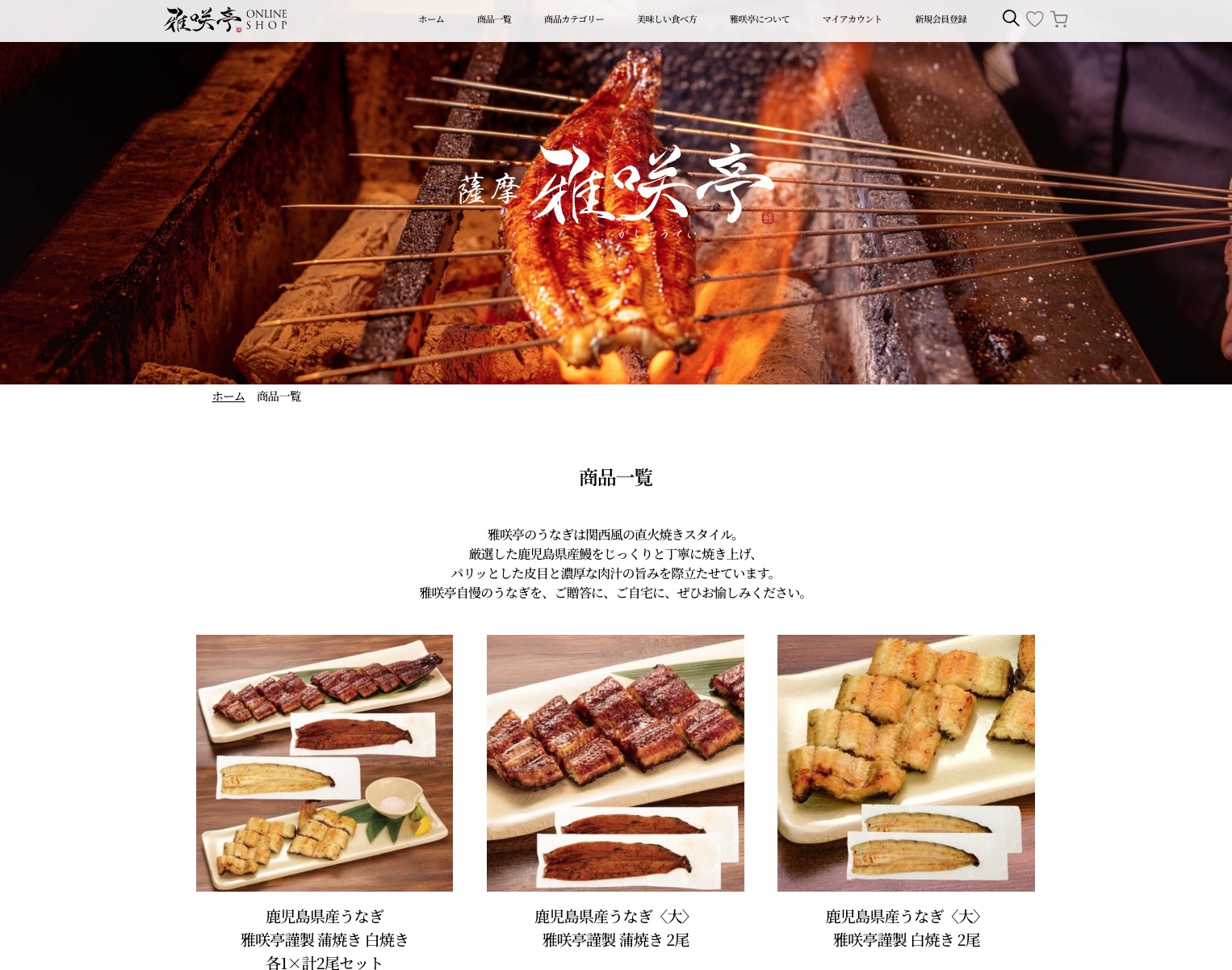 雅咲亭様 鹿児島最大の繁華街である天文館に本店を置くうなぎやさん。備長炭でじっくりと焼き上げたうなぎは絶品です。ショッピングサイトを制作させていただきました。 雅咲亭様ショッピングサイト : https://gashoutei.shop-pro.jp/