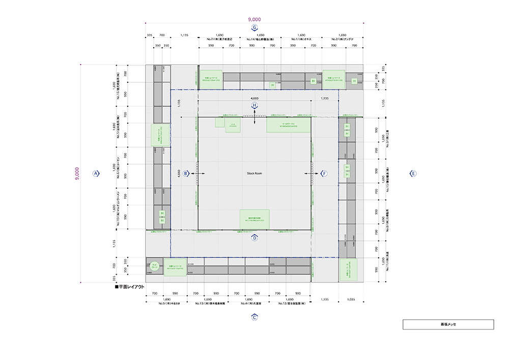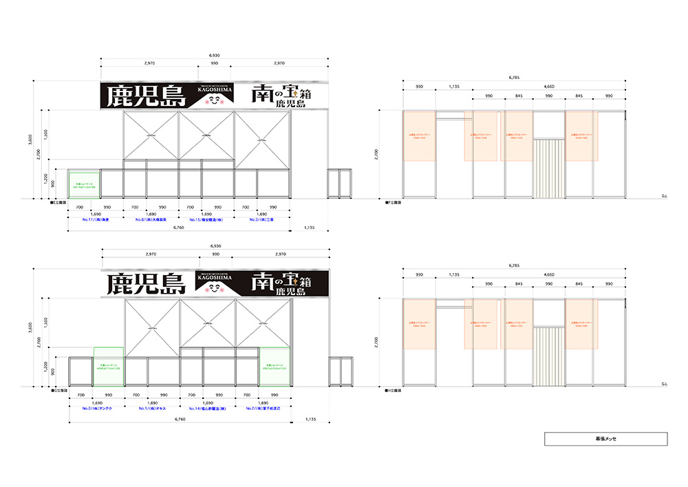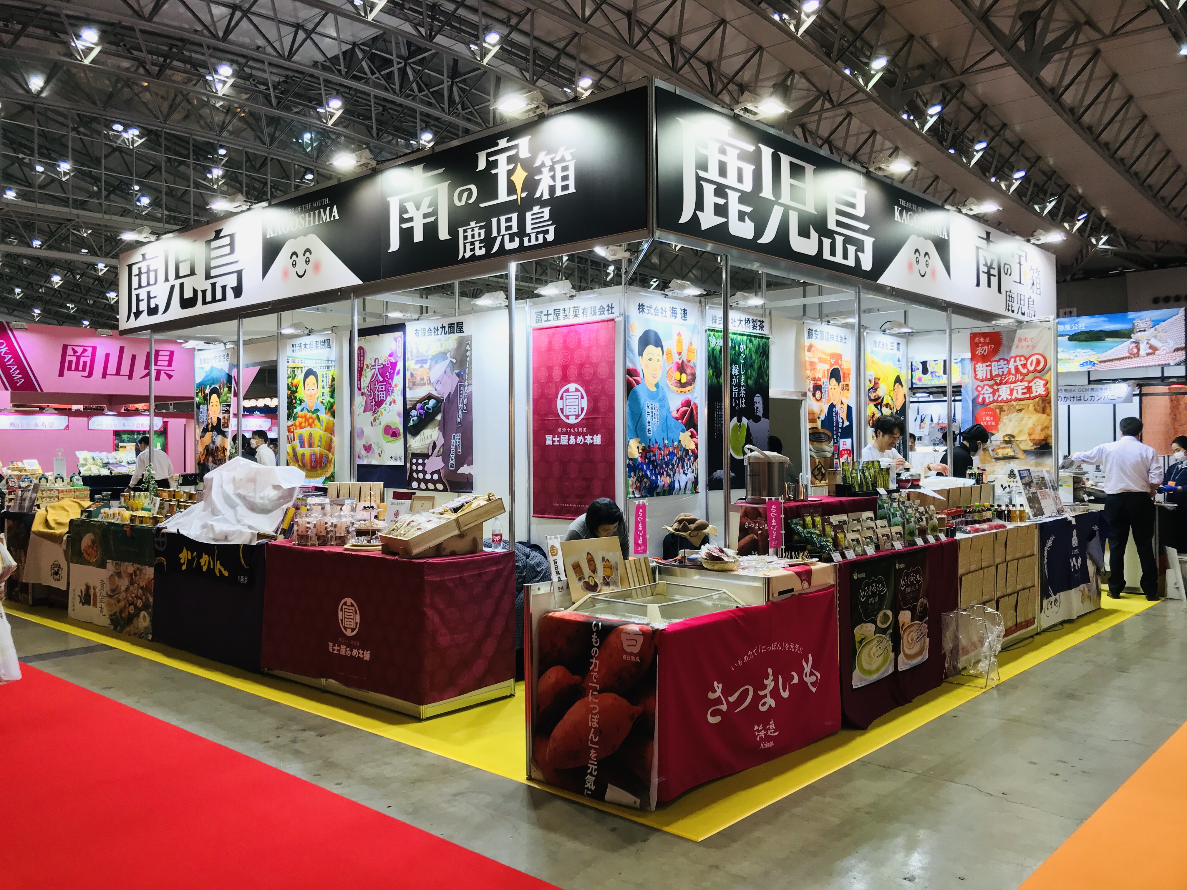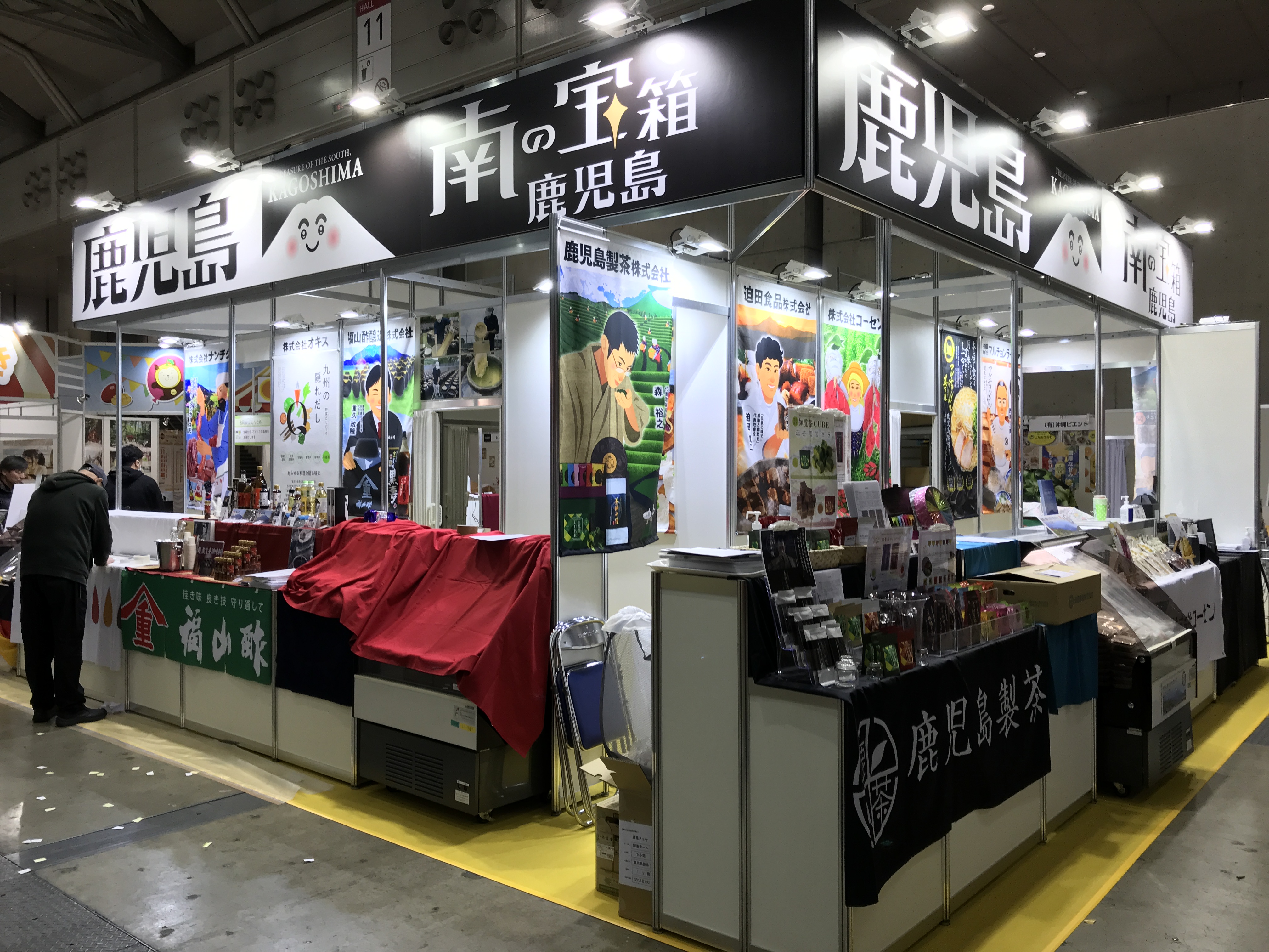 今年は「南の宝箱鹿児島」をキャッチフレーズに掲げ、バイヤーが来場しやすい・したくなる、開放的なブースデザインをコンセプトに、鹿児島ブース全体の集客力をアップするためのレイアウトを考案しました。