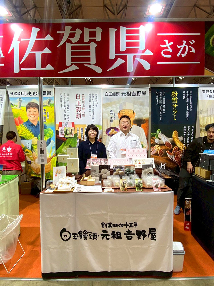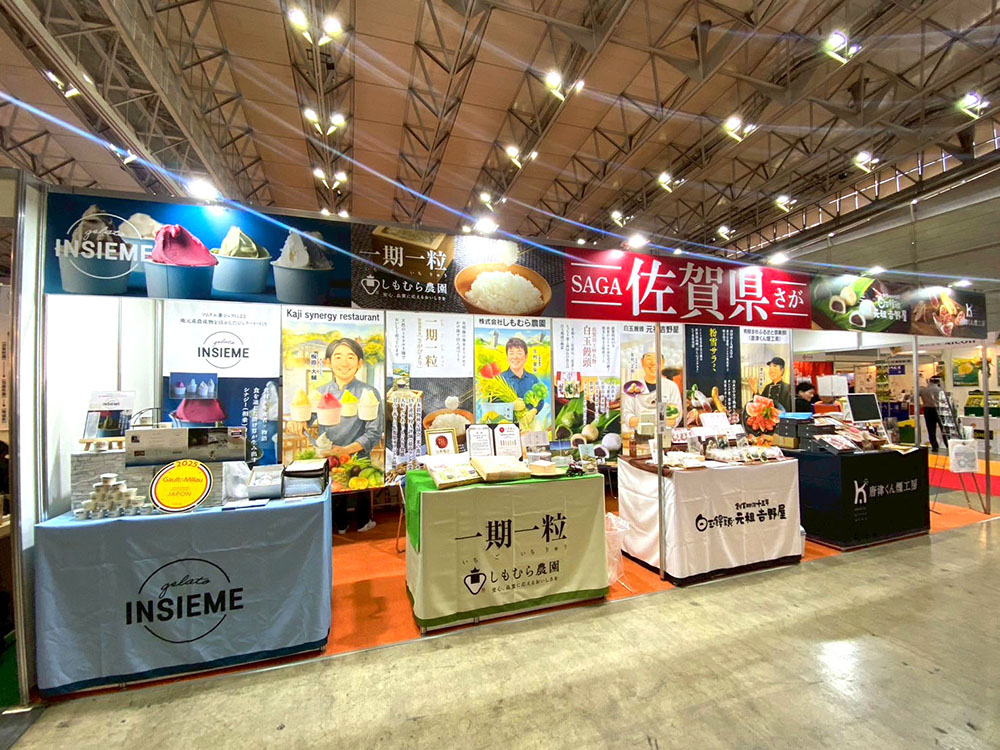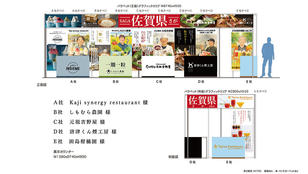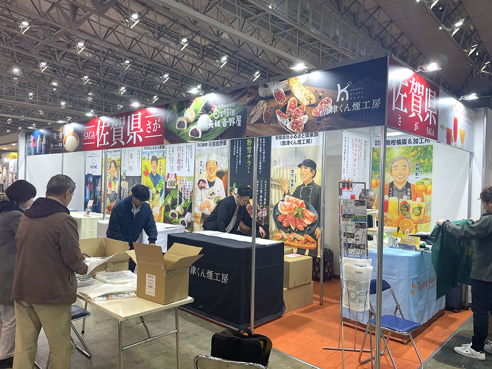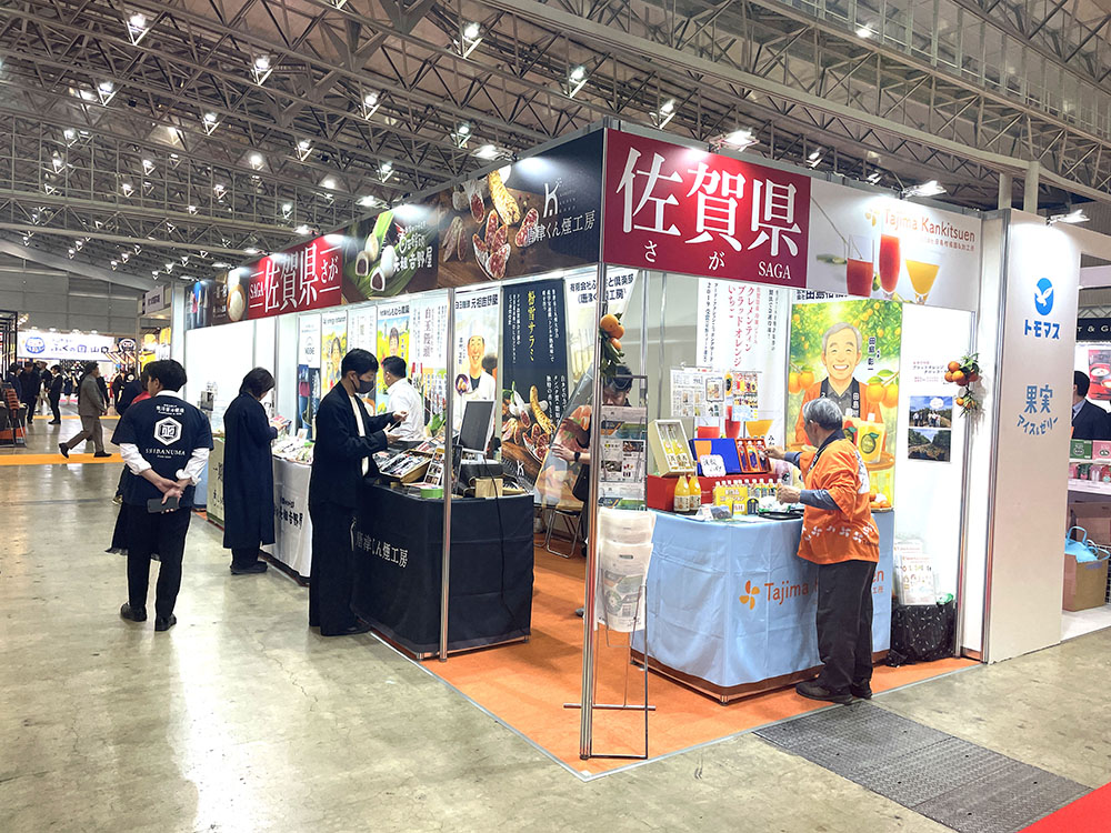 バイヤーが来場しやすい・したくなる、開放的なブースデザインをコンセプトに、佐賀ブース全体の集客力をアップするためのレイアウトを考案しました。